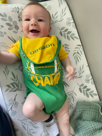 You're a rolling machine (well onto your belly and then you get mad and can't remember how to get back on your back, lol). You giggle and smile all the time. I think your bottom 2 teeth are close to coming in, but I've been thinking that for a while now. Your smile lights up a room we are blessed to witness it.